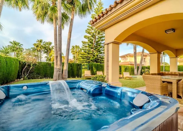 Cozy Villa In Marbella-Estepona ligger 3 km fra El Saladillo Strand, byder på udsigt over haven og sikrer gæsterne med Jacuzzi. Der er værelser med en balkon, et skrivebord, kaffe- og tefaciliteter samt et fuldt udstyret køkken med en mikrobølgeovn, kaffemaskiner/tekedler og et køleskab.